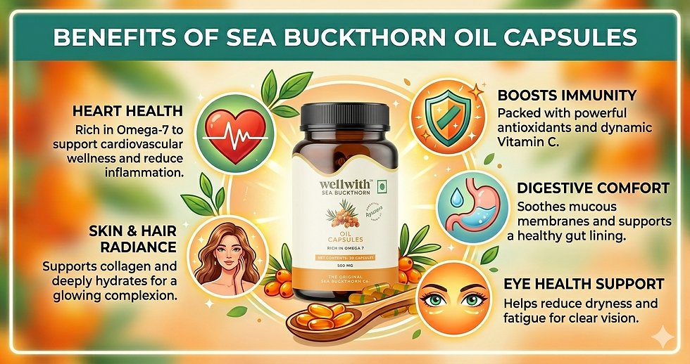 Hidden deep within the rugged terrains of the Himalayas, particularly in the cold deserts of Leh-Ladakh, grows a vibrant orange berry that has been a cornerstone of traditional medicine for centuries. Known scientifically as Hippophae rhamnoides, this "Holy Fruit" is the source of one of the most potent health supplements available today. In this comprehensive guide, we explore the remarkable benefits of Sea Buckthorn Oil Capsules and why they are becoming a staple in modern wellness routines.